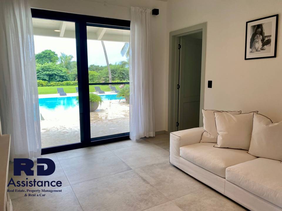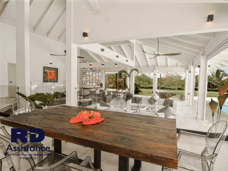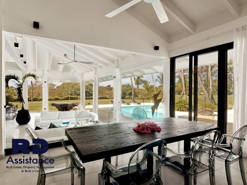 The villa accommodates up to 8 guests and is just a five-minute golf cart ride from Minitas Beach and an eight-minute ride from the Casa de Campo Marina, offering panoramic views of the golf course.