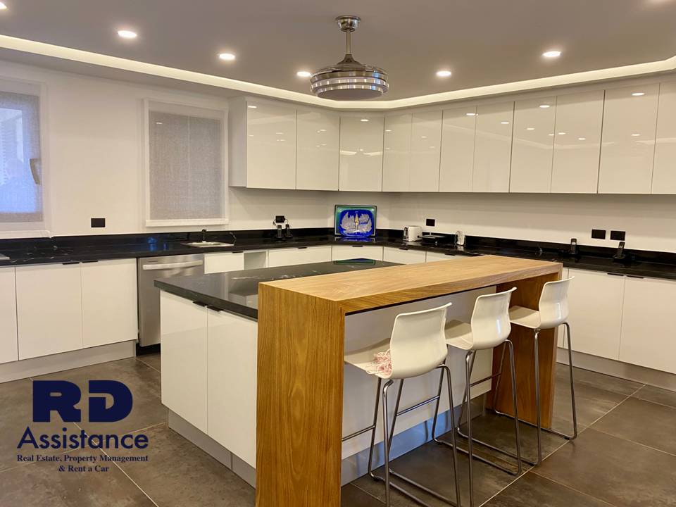 • A super-modern kitchen with an American-style refrigerator, a water cooler for 5-gallon bottles, and a BBQ.