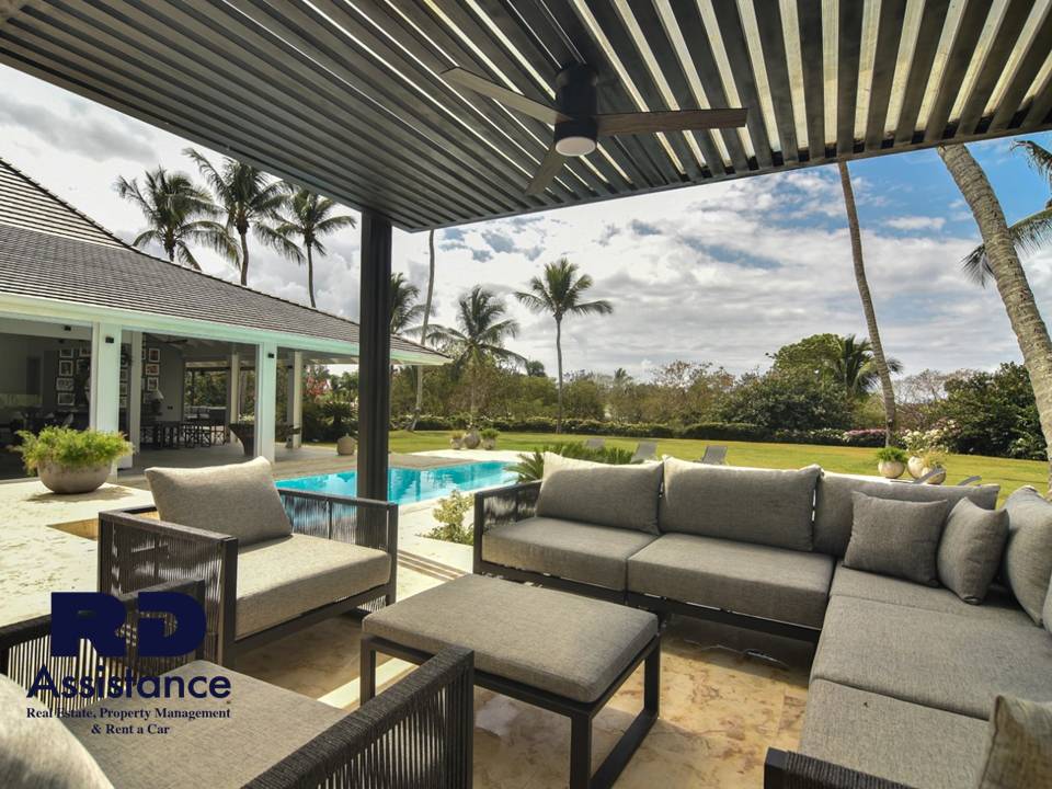 The villa accommodates up to 8 guests and is just a five-minute golf cart ride from Minitas Beach and an eight-minute ride from the Casa de Campo Marina, offering panoramic views of the golf course.